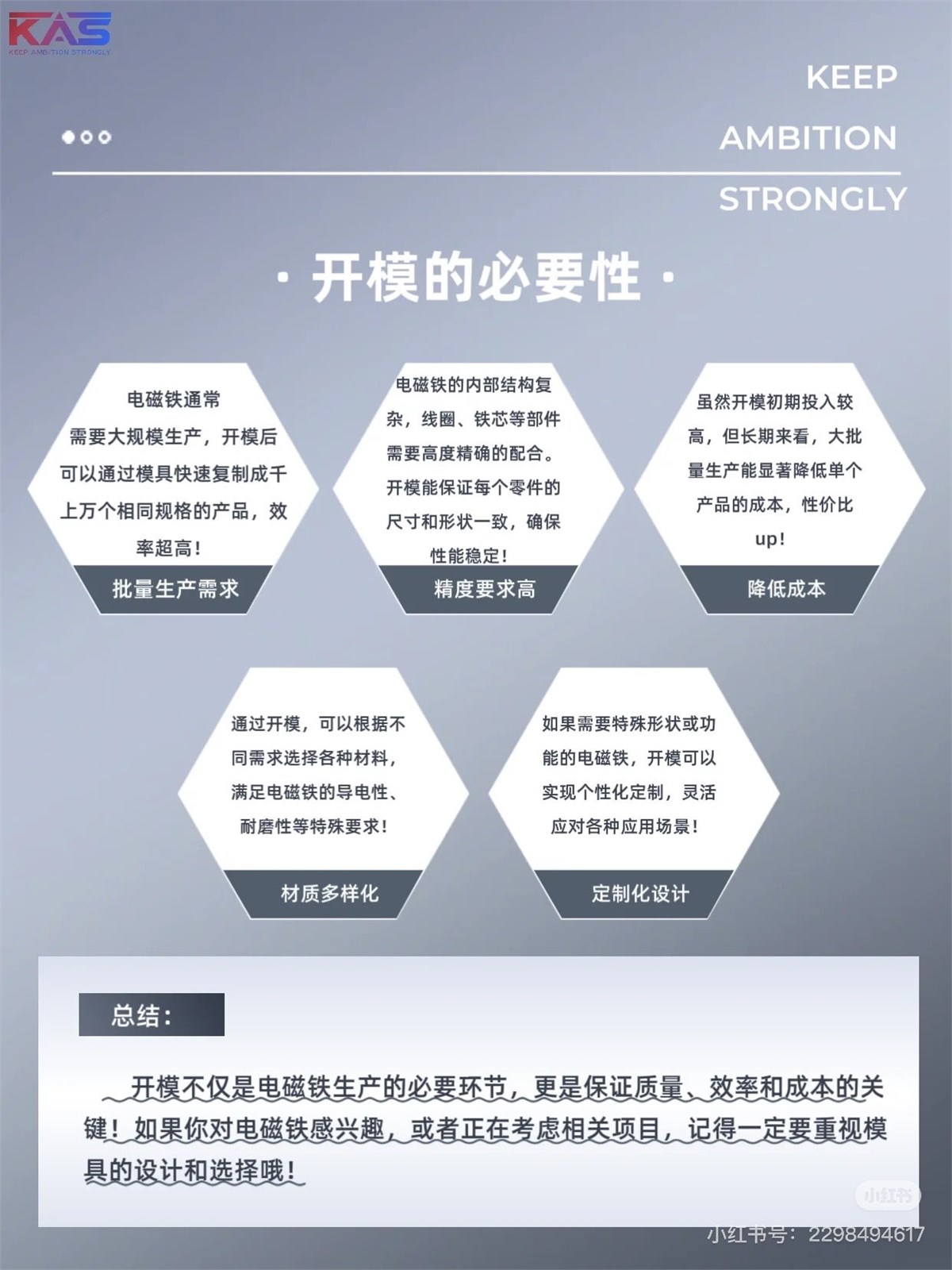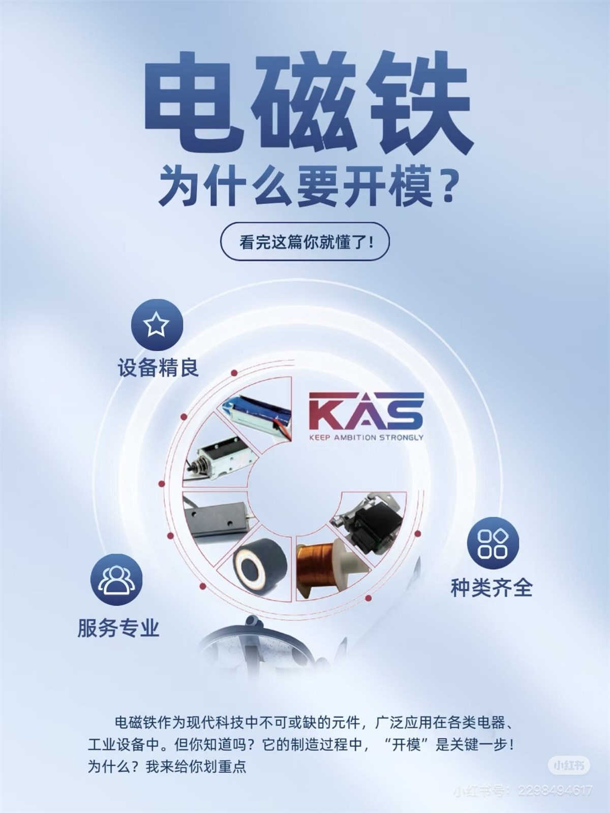开模不仅是电磁铁生产的必要环节,更是保证质量、效率和成本的关键!如果你对电磁铁感兴趣,或者正在考虑相关项目,记得一定要重视模具的设计和选择哦!开模的必要性:批量生产需求;精度要求高;降低成本;材质多样化;定制化设计