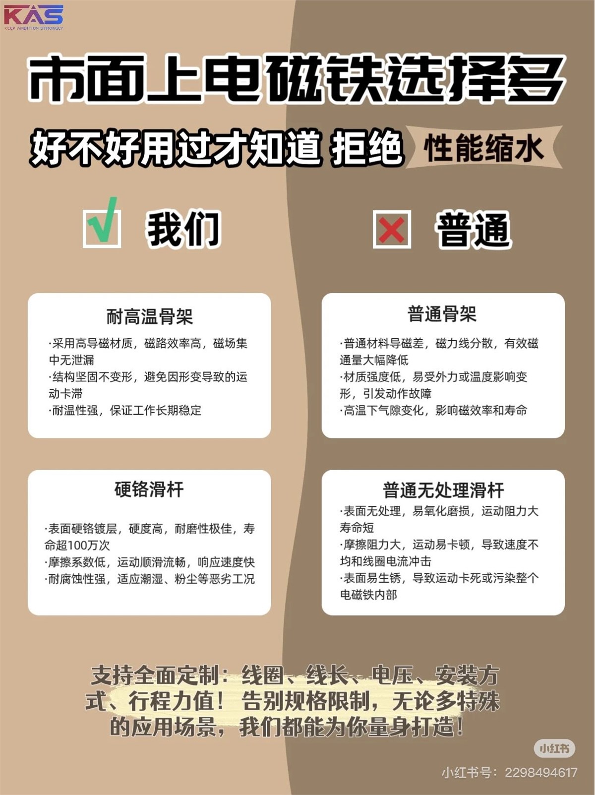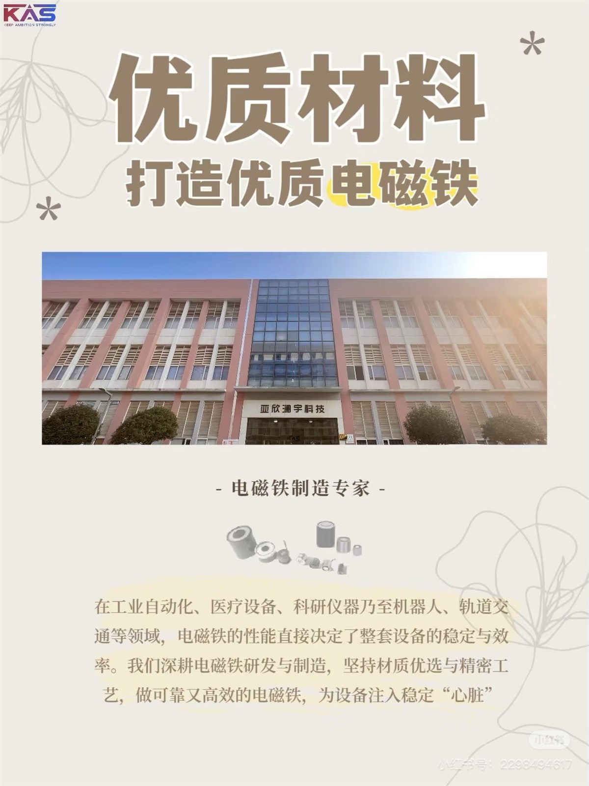 在工业自动化、医疗设备、科研仪器乃至机器人、轨道交通等领域,电磁铁的性能直接决定了整套设备的稳定与效率。我们深耕电磁铁研发与制造,坚持材质优选与精密工艺,做可靠又高效的电磁铁,为设备注入稳定“心脏”告别规格限制,无论多特殊的应用场景,我们都能为你量身打造!亚欣支持全面定制:线圈、线长、电压、安装方式、行程力值!优质材料打造优质电磁铁